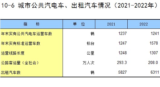 10-6 城市公共汽电车、出租汽车情况(2021-2022年)