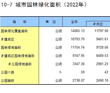 10-7 城市园林绿化面积(2022年)