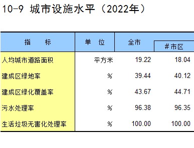 10-9 城市设施水平(2022年)