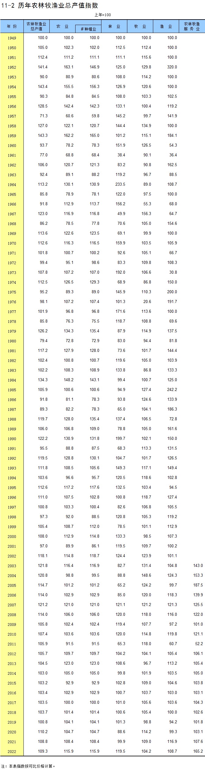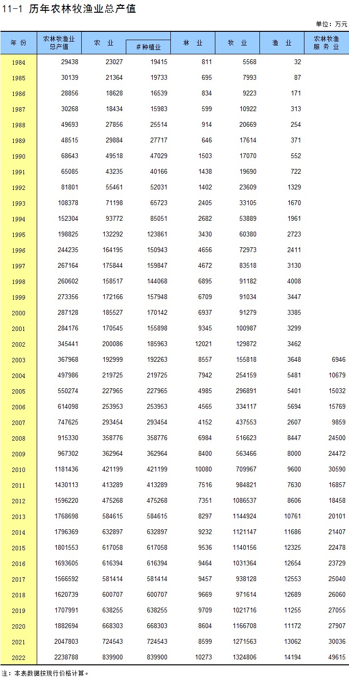 11-1 历年农林牧渔业总产值