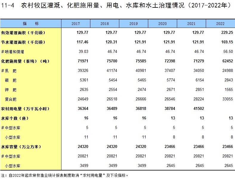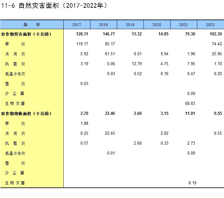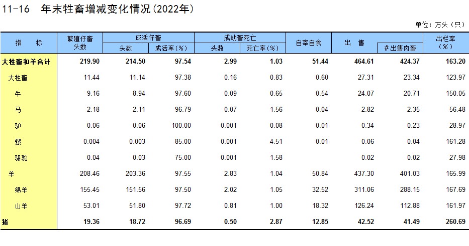 11-16 年末牲畜增减变化情况(2022年)