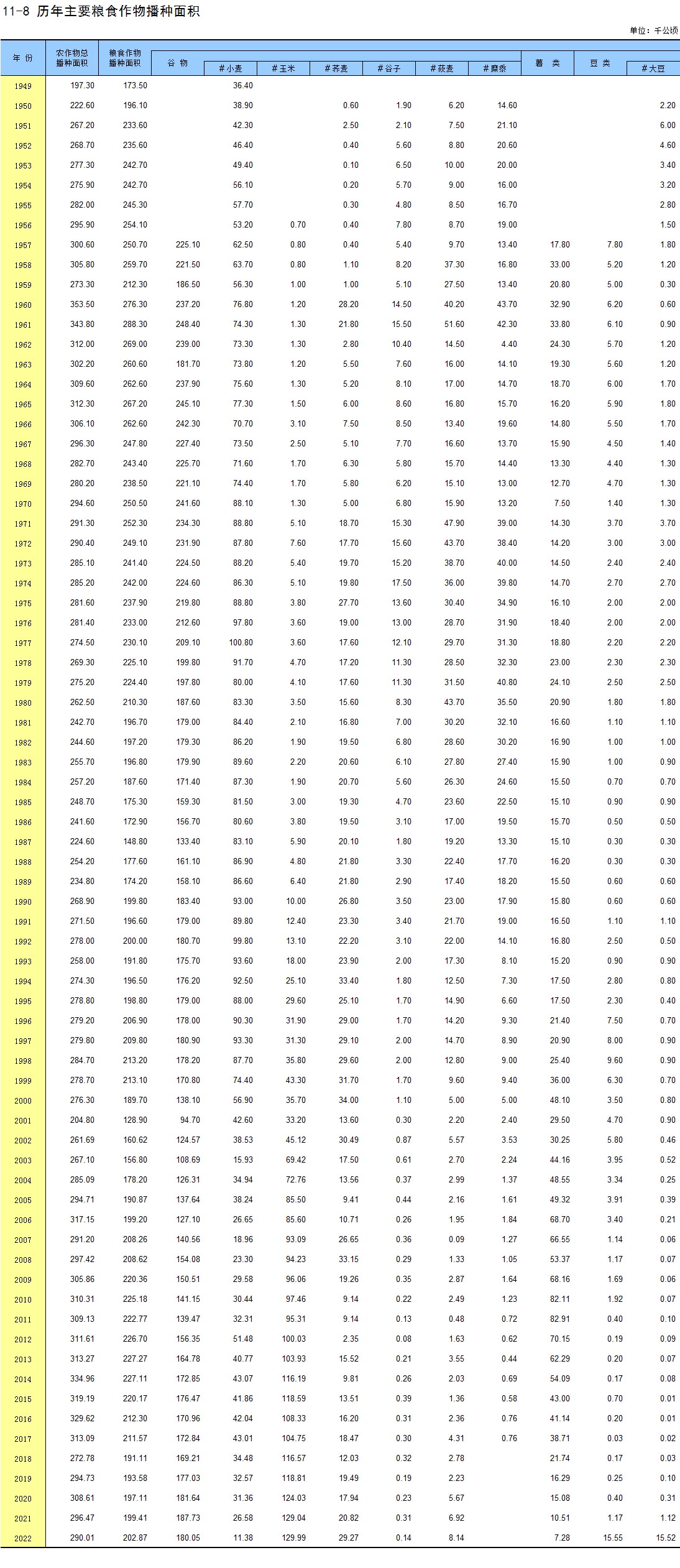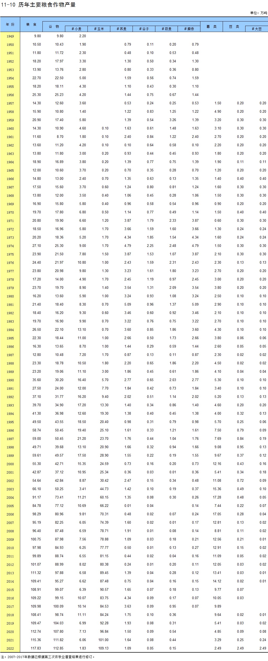 11-10 历年主要粮食作物产量