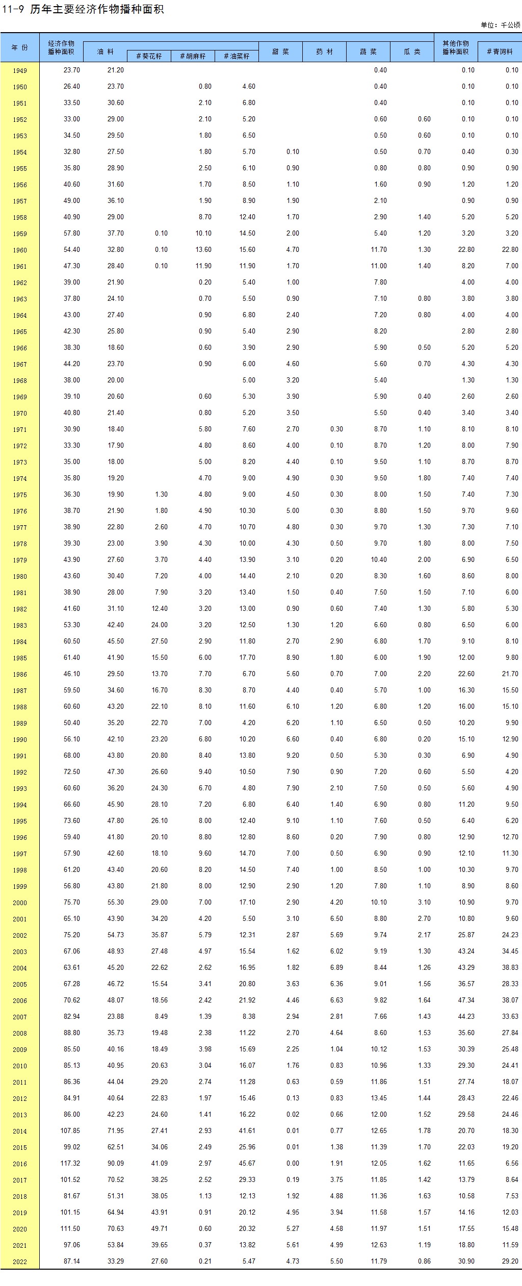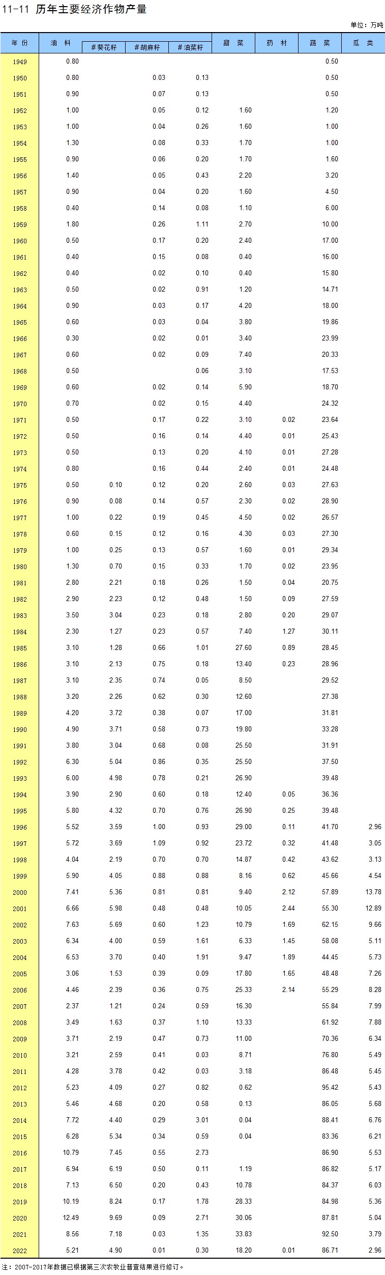 11-11 历年主要经济作物产量