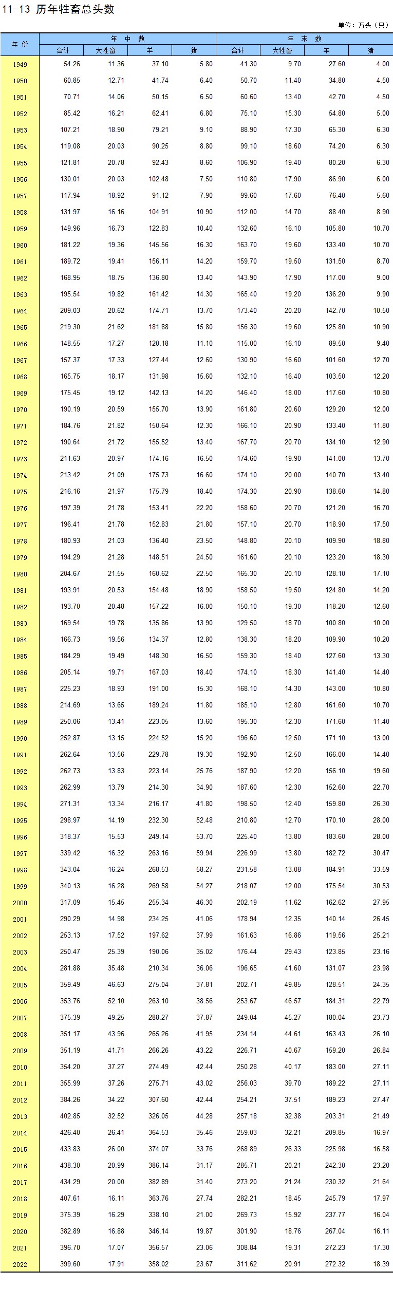 11-13 历年牲畜总头数