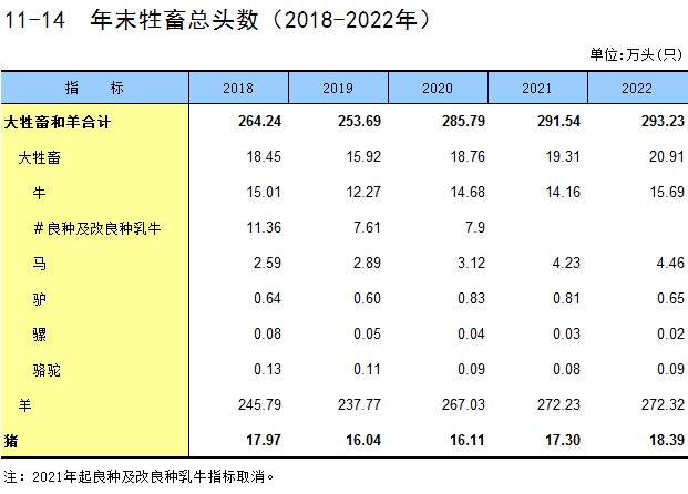 11-14 年末牲畜总头数(2018-2022年)