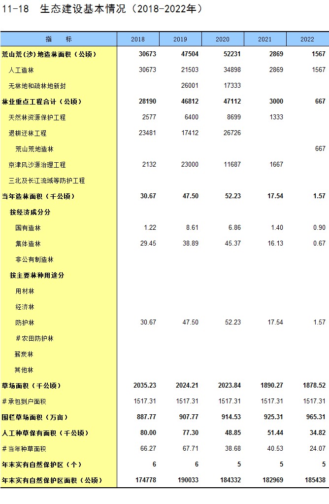 11-18 生态建设基本情况(2018-2022年)
