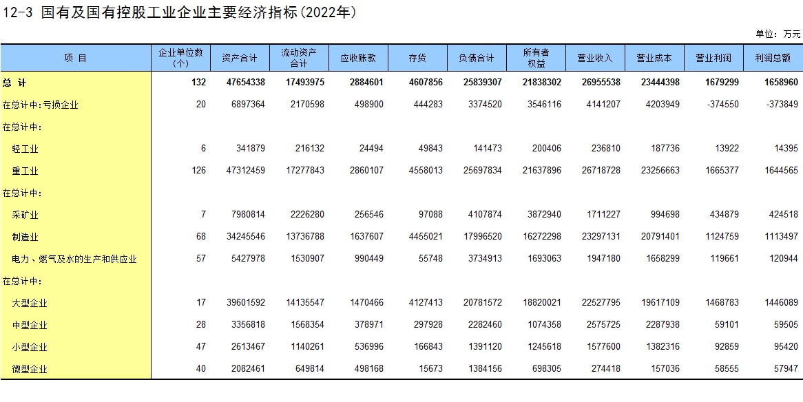 12-3 国有及国有控股工业企业主要经济指标(2022年)