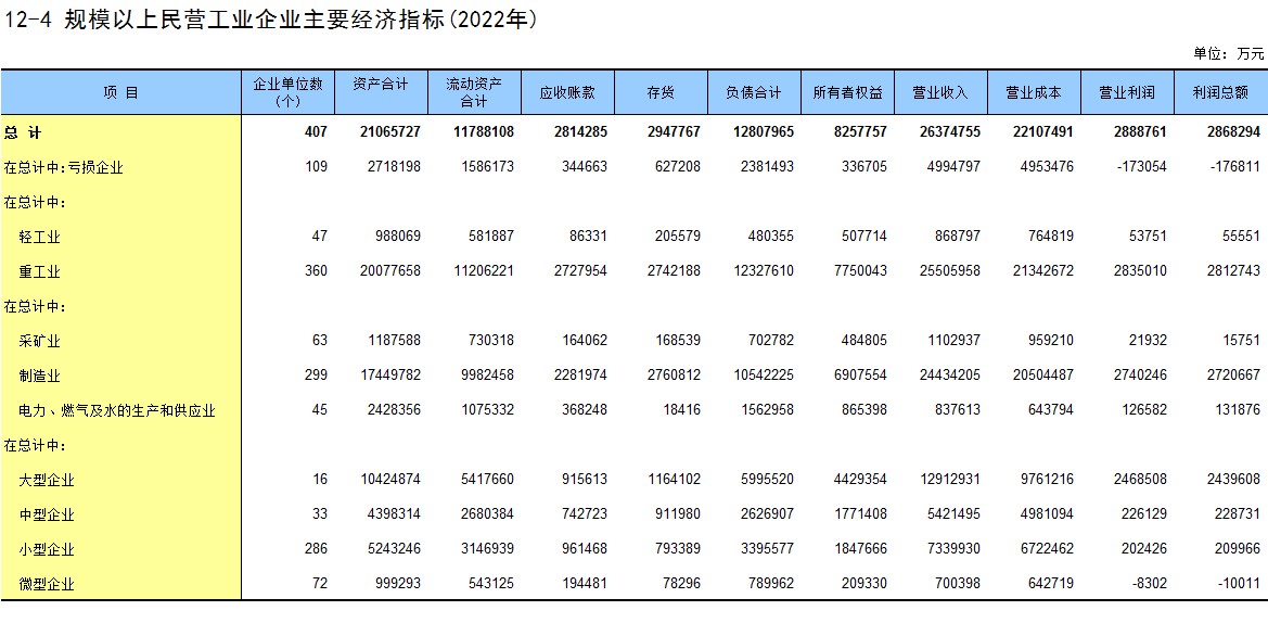 12-4 规模以上民营工业企业主要经济指标(2022年)