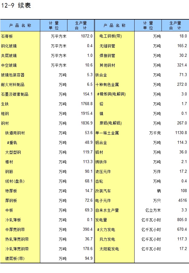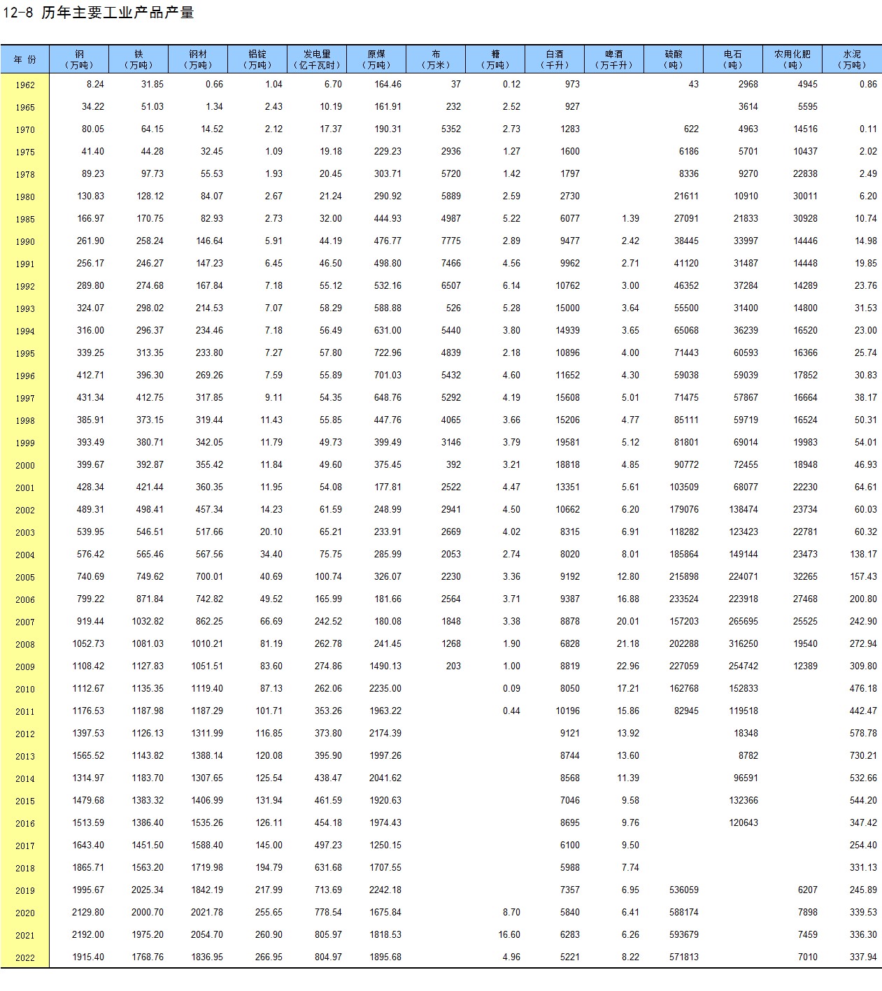 12-8 历年主要工业产品产量