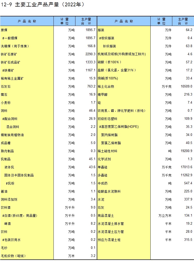 12-9 主要工业产品产量(2022年)
