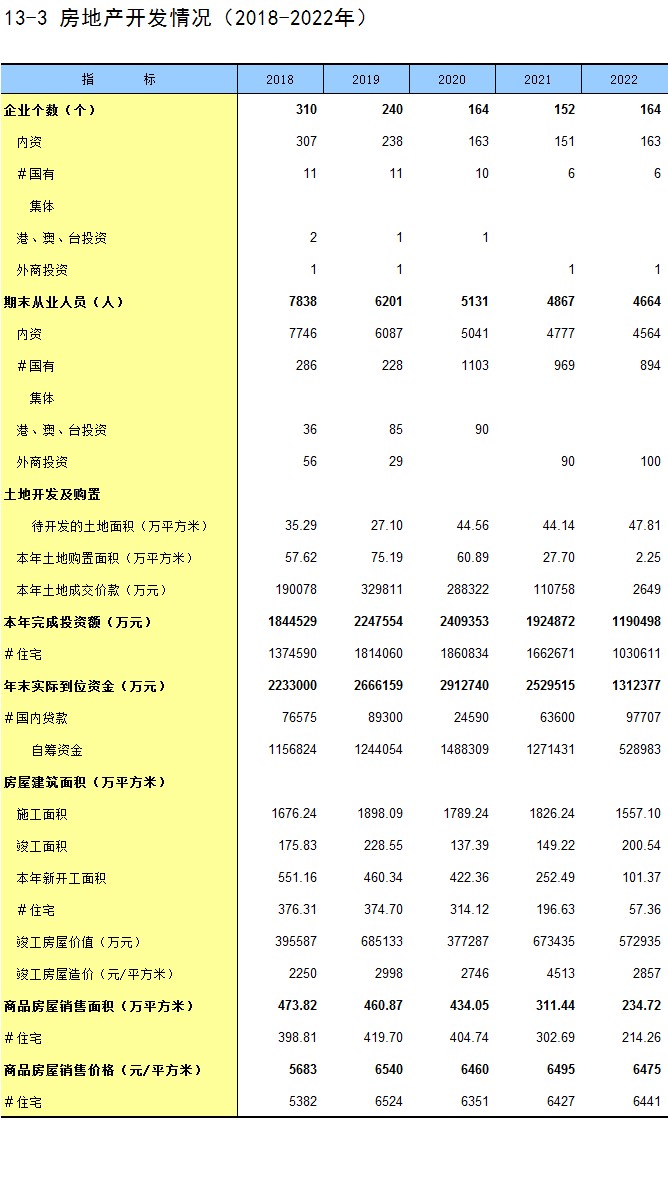 13-3 房地产开发情况(2018-2022年)