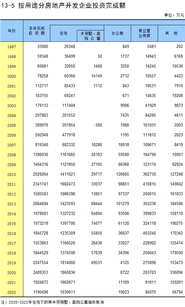 13-5 按用途分房地产开发企业投资完成额