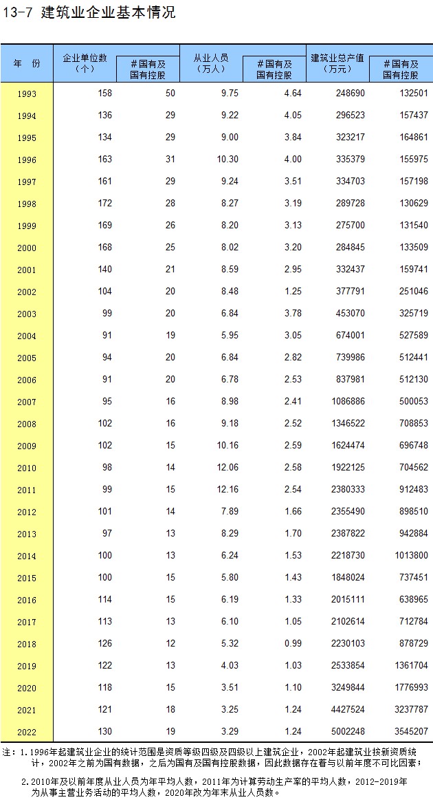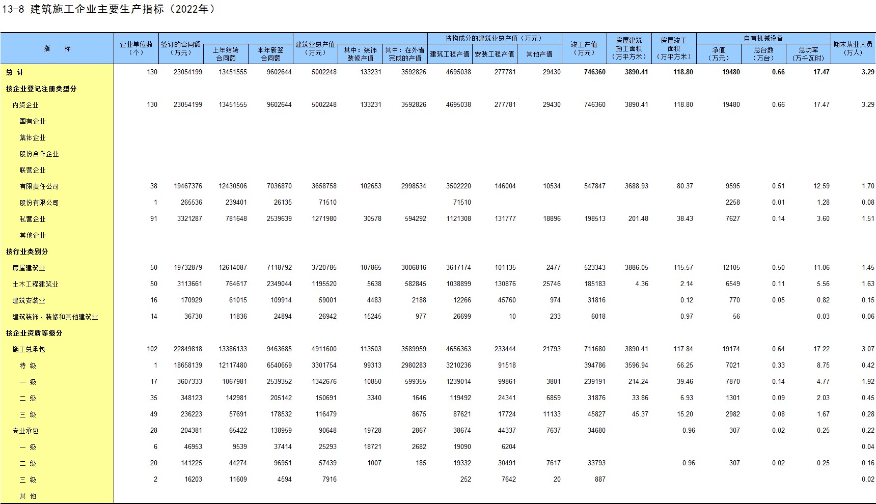 13-8 建筑施工企业主要生产指标(2022年)