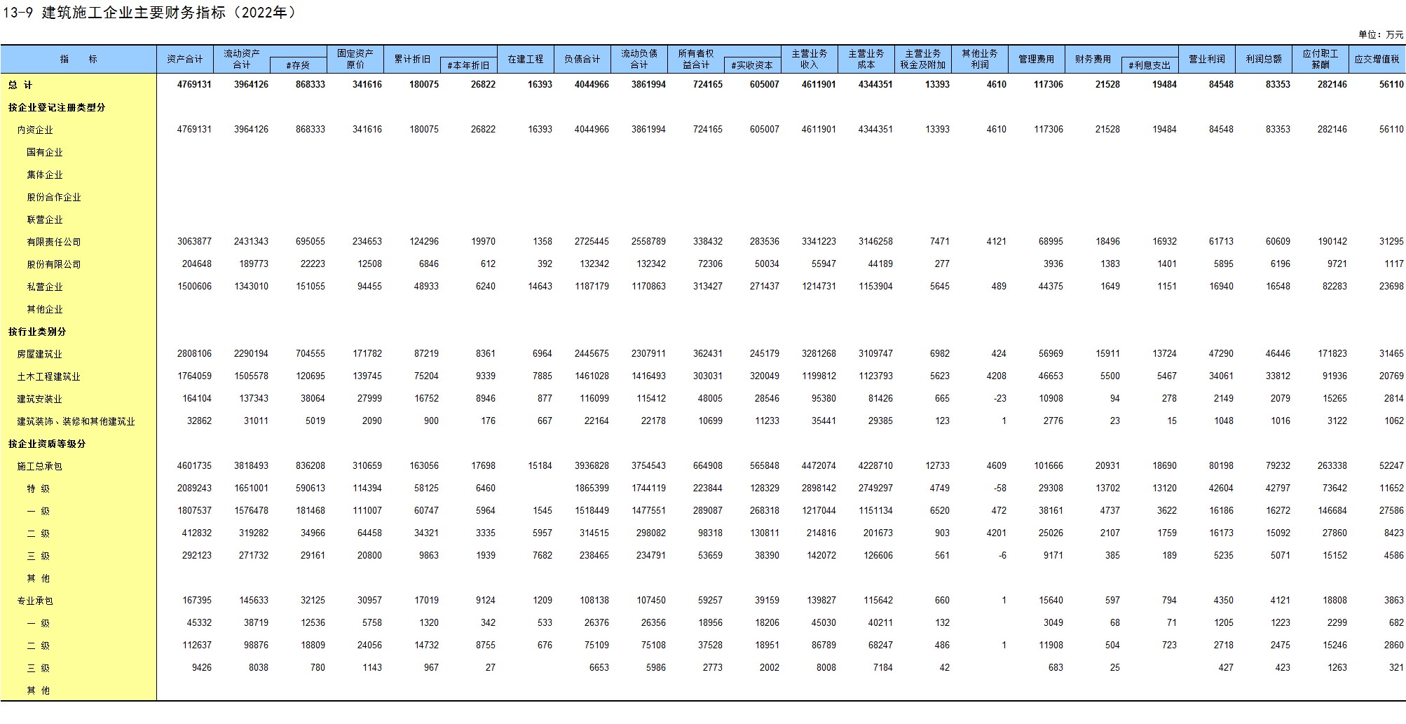 13-9 建筑施工企业主要财务指标(2022年)