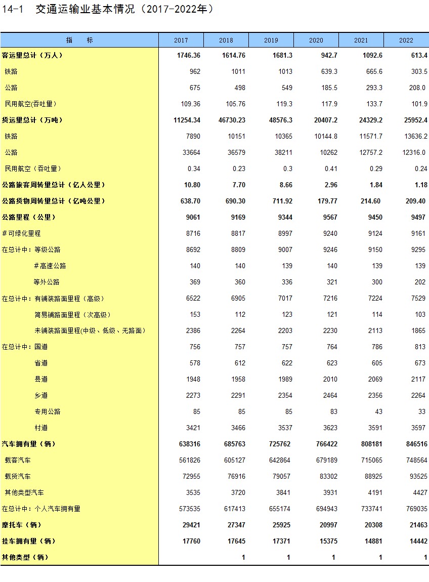 14-1 交通运输业基本情况(2017-2022年)
