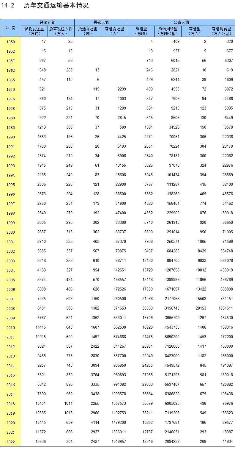 14-2 历年交通运输基本情况