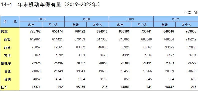 14-4 年末机动车保有量(2019-2022年)