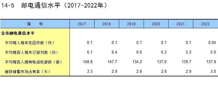 14-5 邮电通信水平(2017-2022年)