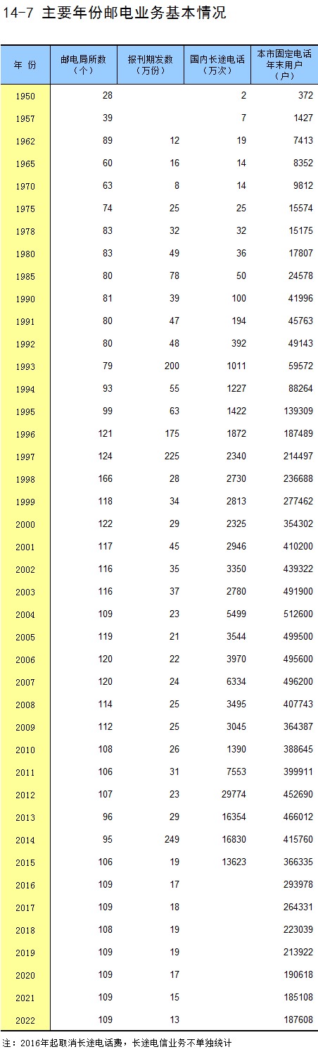 14-7 主要年份邮电业务基本情况