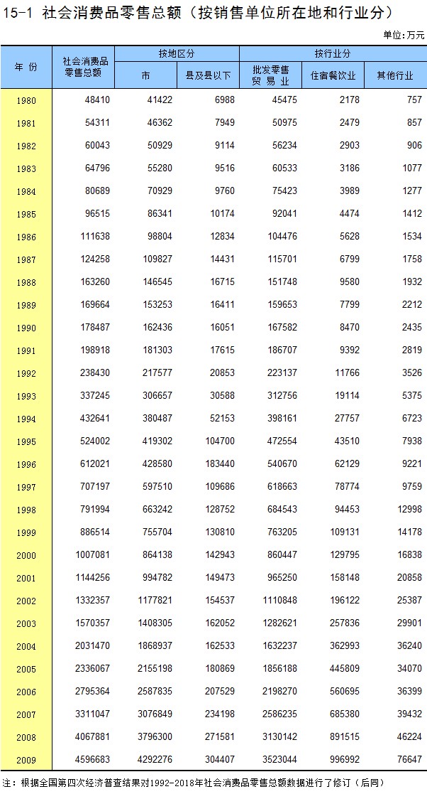 15-1 社会消费品零售总额(按销售单位所在地和行业分)