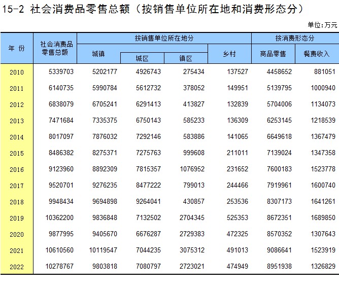 15-2 社会消费品零售总额(按销售单位所在地和消费形态分)
