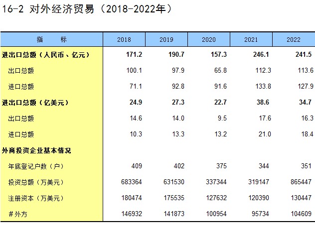 16-2 对外经济贸易(2018-2022年)