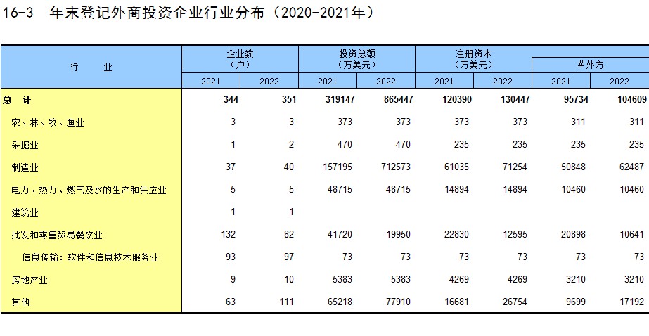 16-3 年末登记外商投资企业行业分布(2020-2021年)