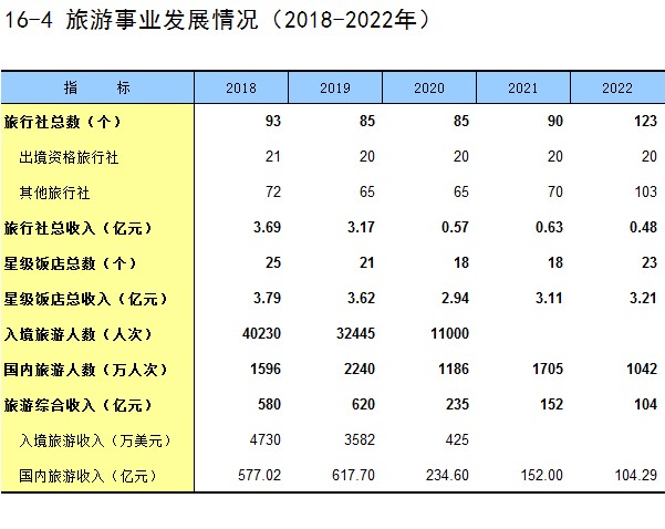 16-4 旅游事业发展情况(2018-2022年)