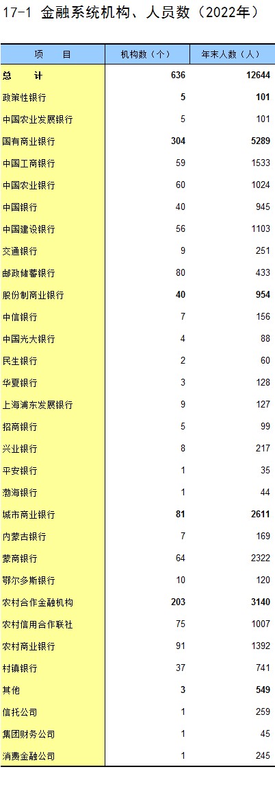17-1 金融系统机构、人员数(2022年)