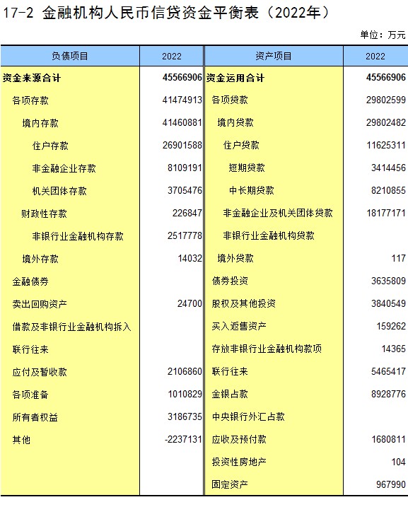17-2 金融机构人民币信贷资金平衡表(2022年)