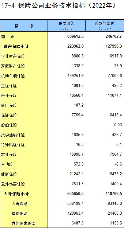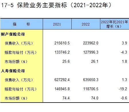 17-5 保险业务主要指标(2021-2022年)