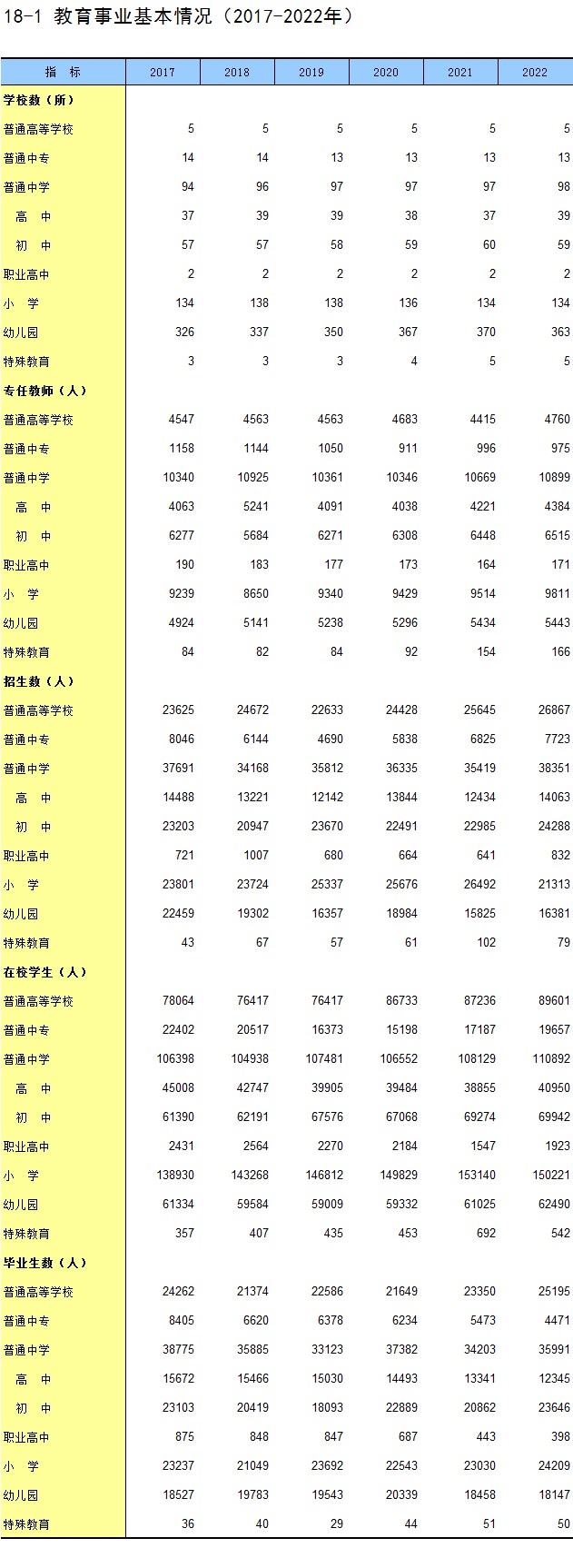 18-1 教育事业基本情况(2017-2022年)