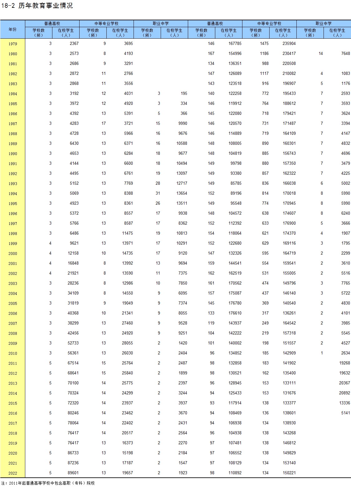 18-2 历年教育事业情况