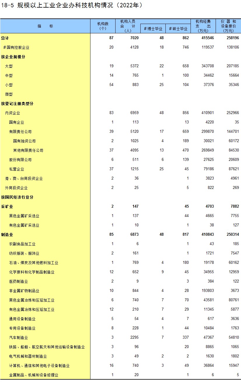 18-5 规模以上工业企业办科技机构情况(2022年)