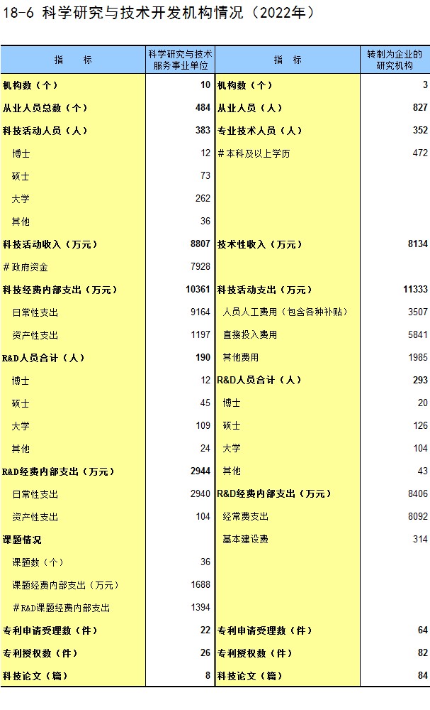18-6 科学研究与技术开发机构情况(2022年)