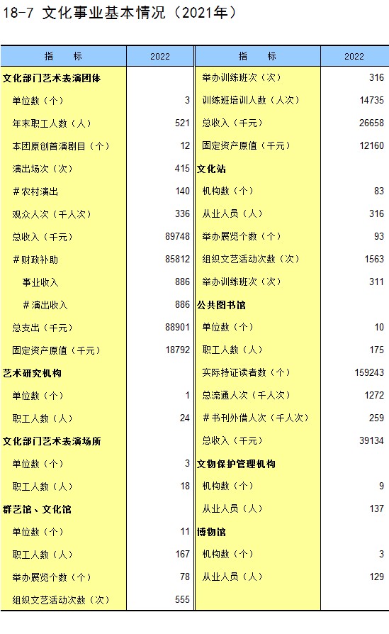 18-7 文化事业基本情况(2021年)