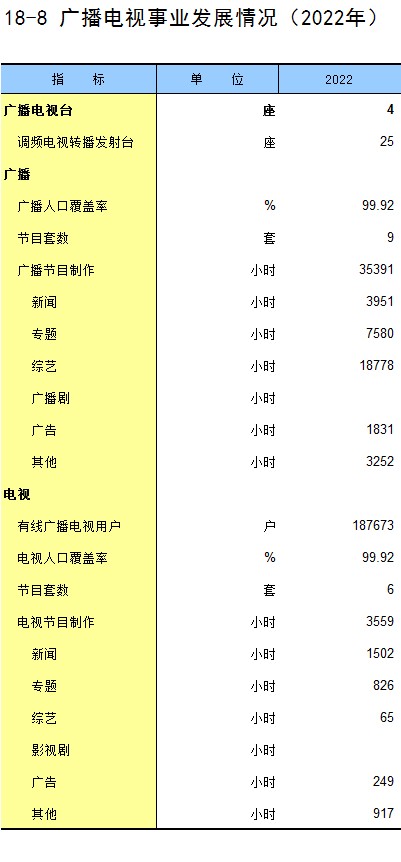 18-8 广播电视事业发展情况(2022年)