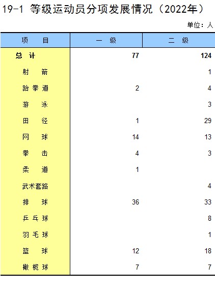 19-1 等级运动员分项发展情况(2022年)
