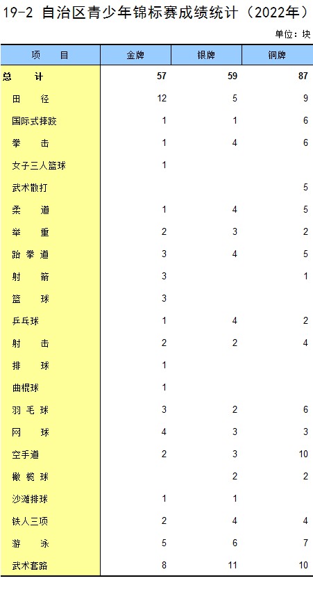 19-2 自治区青少年锦标赛成绩统计(2022年)