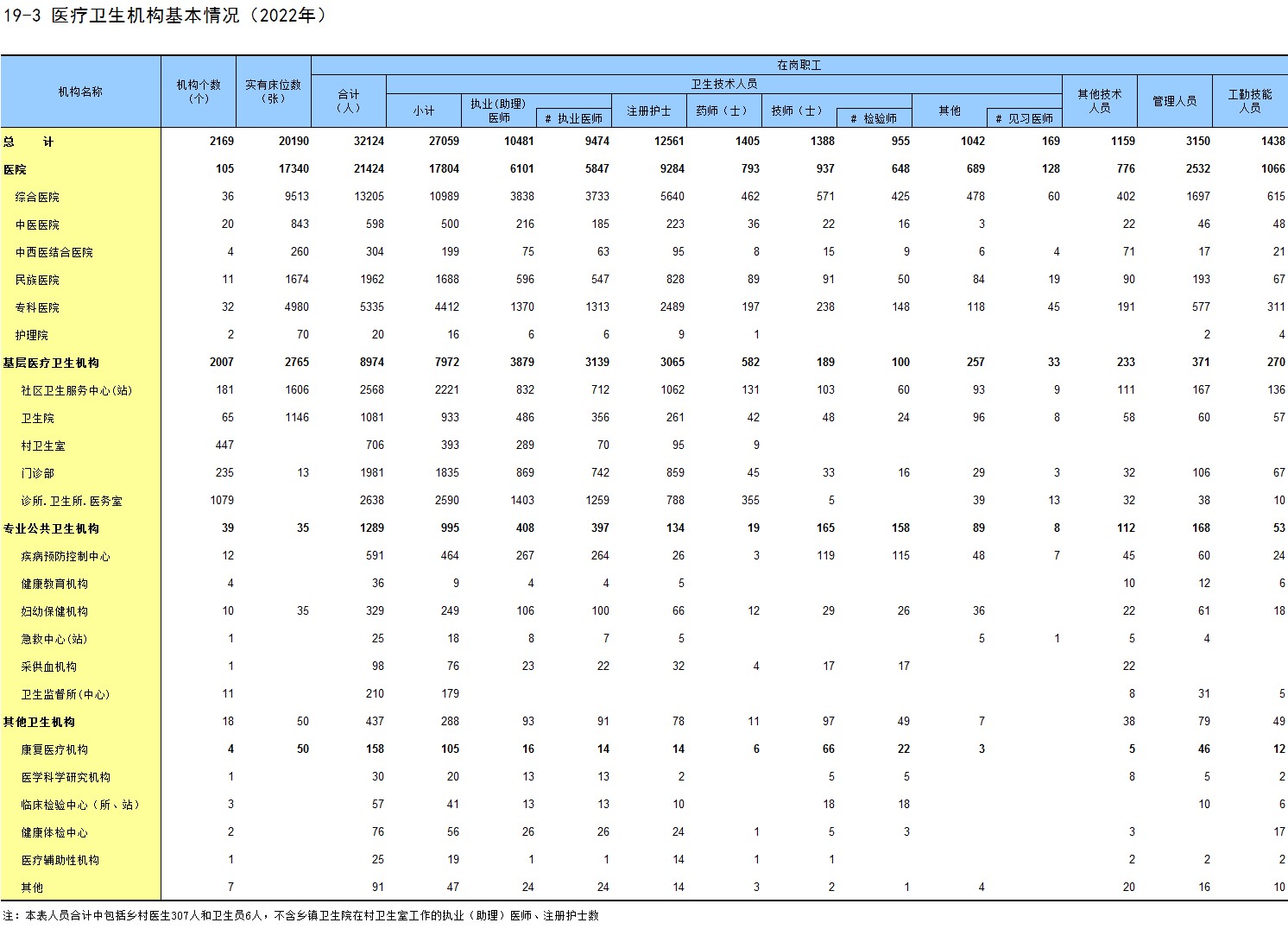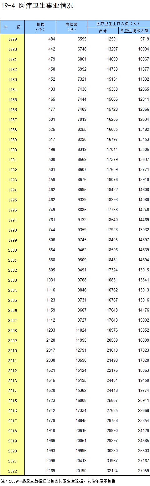 19-3 医疗卫生机构基本情况(2022年)