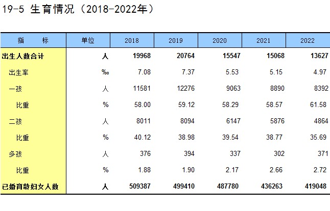 19-5 生育情况(2018-2022年)
