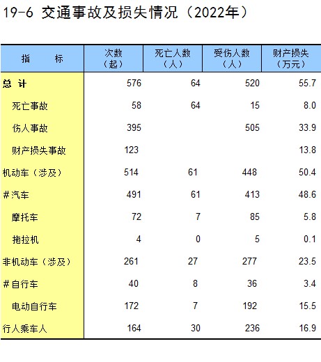 19-6 交通事故及损失情况(2022年)