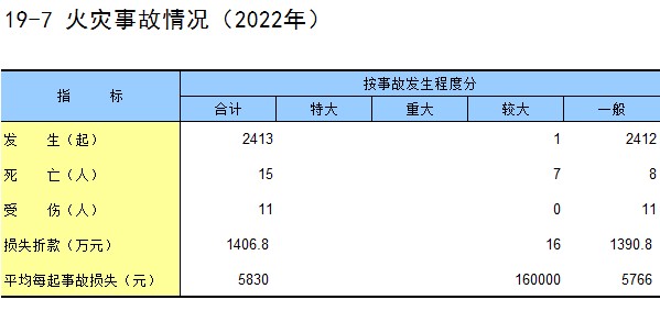 19-7 火灾事故情况(2022年)