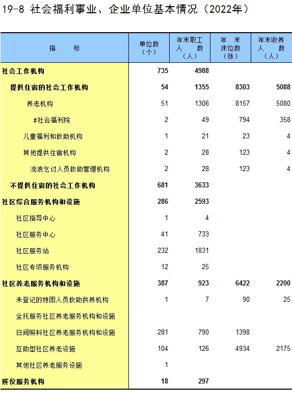19-8 社会福利事业、企业单位基本情况(2022年)