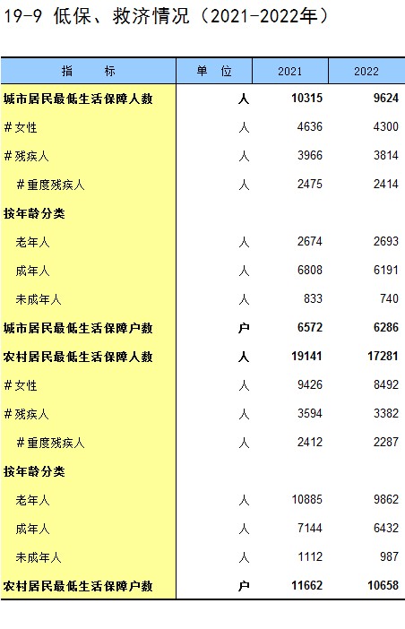 19-9 低保、救济情况(2021-2022年)