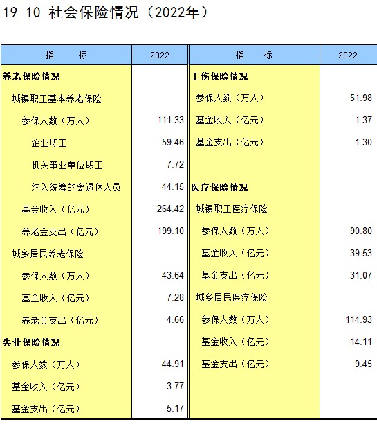 19-10 社会保险情况(2022年)