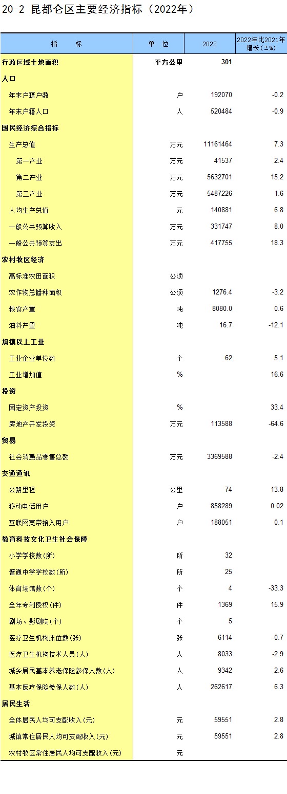 20-2 昆都仑区主要经济指标(2022年)