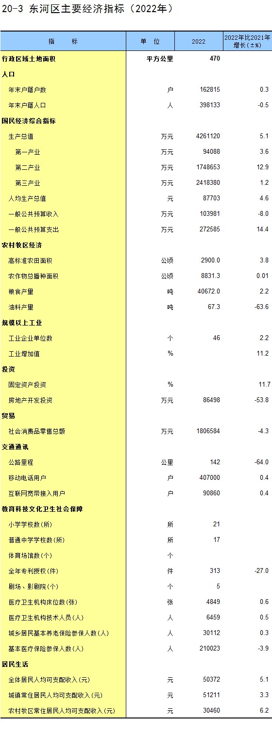 20-3 东河区主要经济指标(2022年)