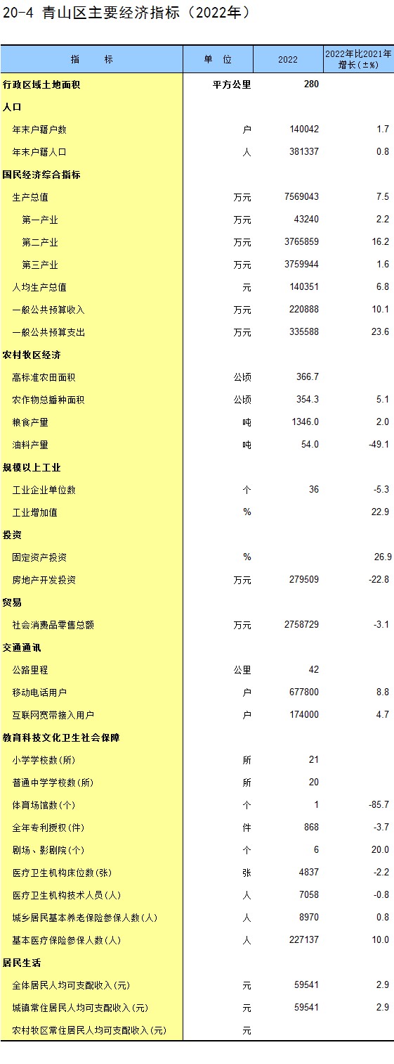 20-4 青山区主要经济指标(2022年)