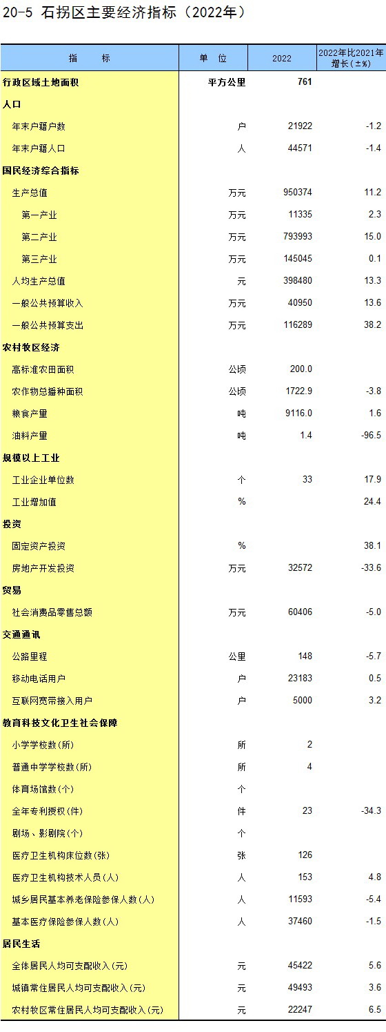 20-5 石拐区主要经济指标(2022年)